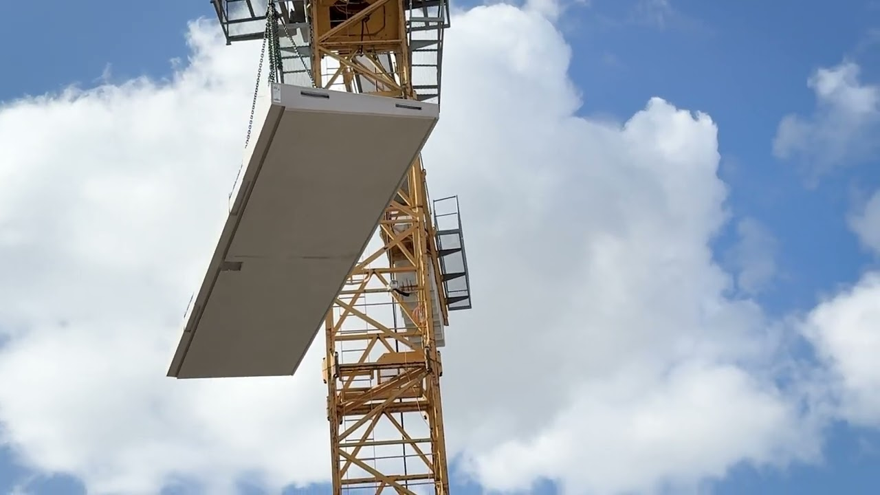 Schöck Isokorb® pro dodatečné napojení prefabrikovaných balkónů u novostaveb, bez lešení a podpůrných konstrukcí.