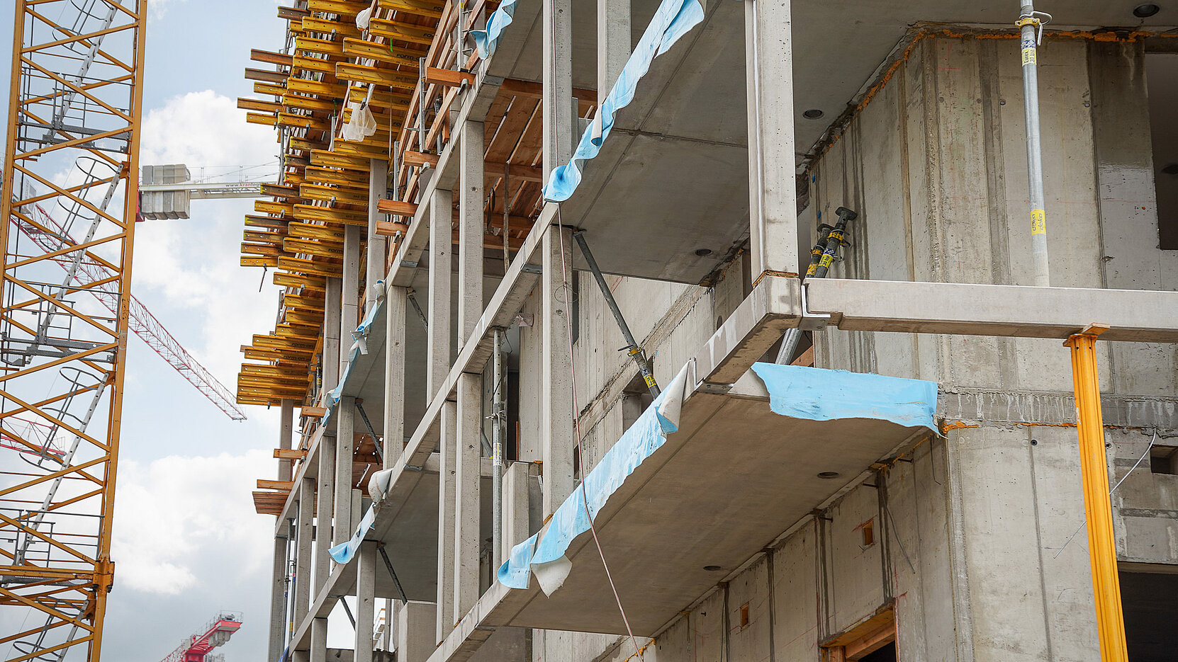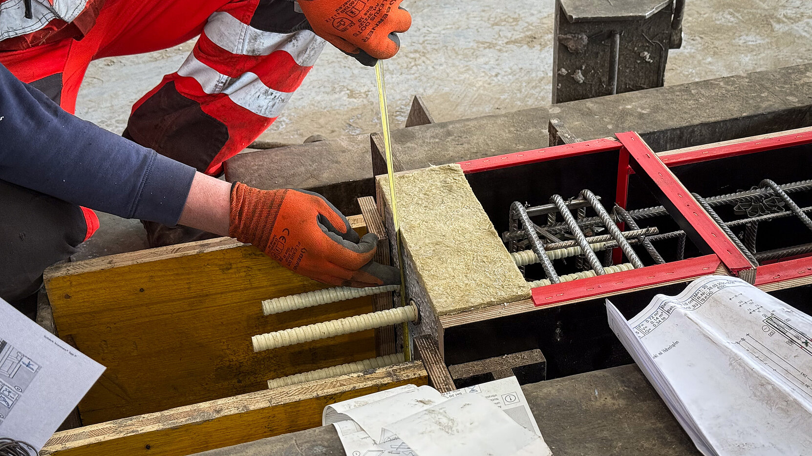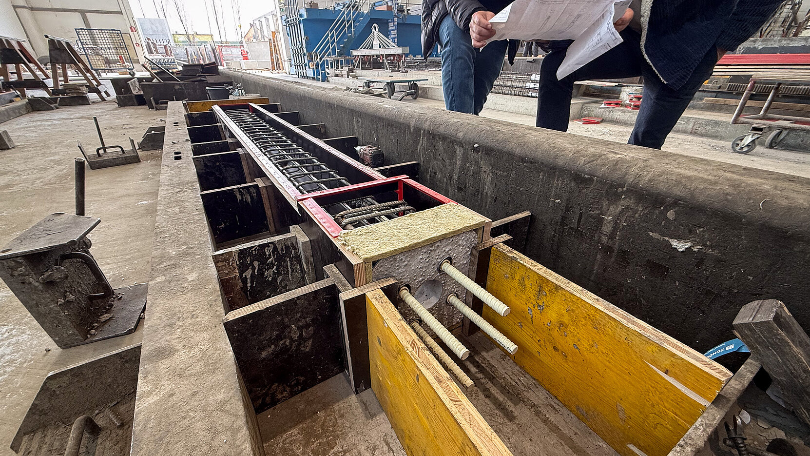 Einen wesentlichen Beitrag zur Realisierung des Projekts leistet die Firma Schöck mit ihren Lösungen nach dem TELLIGENT® Prinzip. Dieses unterstützt nicht nur eine besonders wirtschaftliche Bauweise und trägt somit direkt zur Schaffung von leistbarem Wohnraum bei, sondern fördert zugleich ein nachhaltiges und energieeffizientes Bauen. Konkret wurde bei diesem Bauvorhaben die Effizienz des Bauprozesses maßgeblich gesteigert: Die tragenden Säulen wurden bereits im Fertigteilwerk mit dem thermisch trennenden Bauteil Schöck Sconnex® P-U ausgestattet. Diese montagefertigen Elemente wurden direkt zur Baustelle geliefert und dort präzise und zeitsparend in den vorab betonierten Stützenfuß eingesetzt. Dieser hohe Grad an Vorfertigung beschleunigt nicht nur den Bauablauf erheblich, sondern sichert auch eine durchgängig hohe Qualität und minimiert Wärmebrücken – ein entscheidender Faktor für die Energieeffizienz des gesamten Gebäudes.