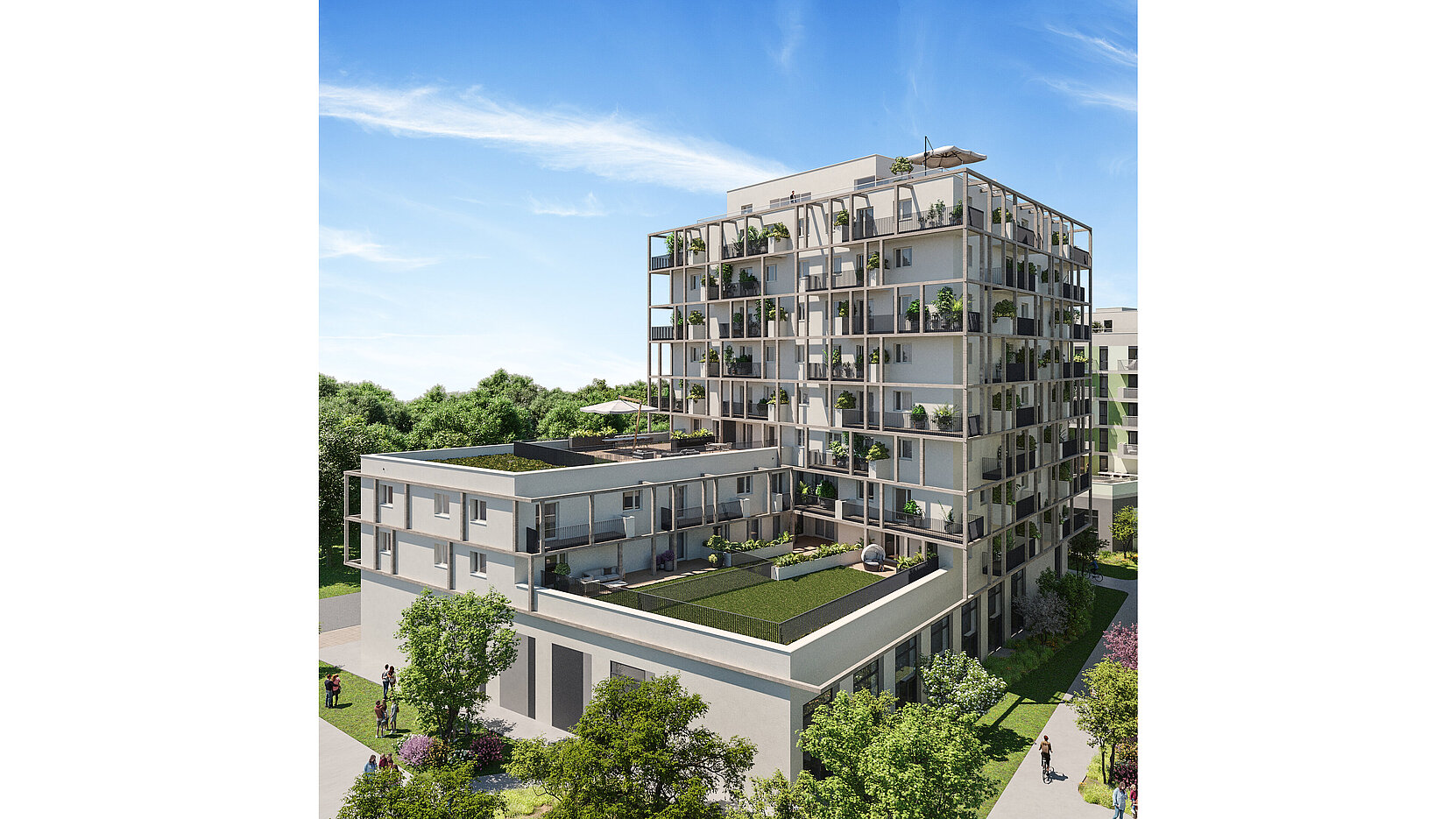 Der Fokus liegt dabei auf der Schaffung von leistbarem Wohnraum für eine breite Bevölkerungsschicht. Ergänzt wird das Angebot durch eine hohe Dichte an Grün- und Erholungsflächen sowie sozialer Infrastruktur (z.B. Schulen, Kindergärten), die zusammen eine herausragende Lebensqualität für die zukünftigen Bewohnerinnen und Bewohner sicherstellen sollen.