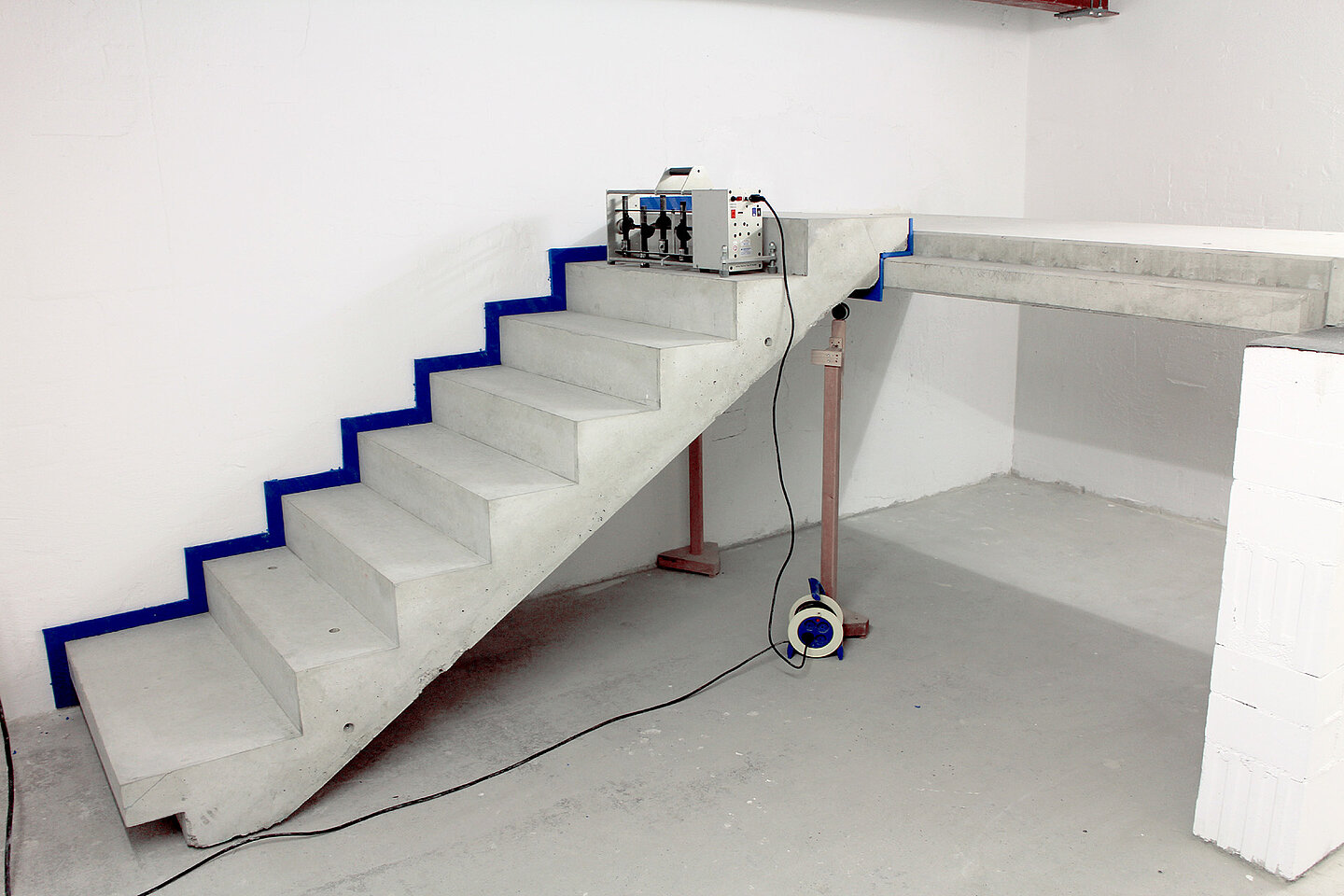 Trittschalldämmelement für den Anschluss Treppenlauf an Bodenplatte.