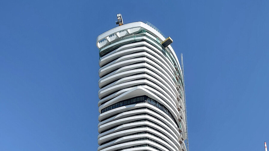 Baden-Baden, im September 2025 – Danubeflats kombiniert die exklusive Lage direkt an der Neuen Donau mit zukunftsweisendem Wohnerlebnis. Österreichs höchster Wohnturm setzt neue Maßstäbe, was Design und Architektur betrifft. Umlaufende, rund geschwungene Balkone prägen die Fassade des elegant nach oben strebenden Gebäudes. Die enorm hohen Lasten werden von Schöck Isokorb zuverlässig abgetragen. Mit einer Dämmkörperdicke von 120 Millimetern bietet das tragende Wärmedämmelement zudem eine durchgängige Wärmedämmebene trotz der besonderen Gebäudegeometrie.