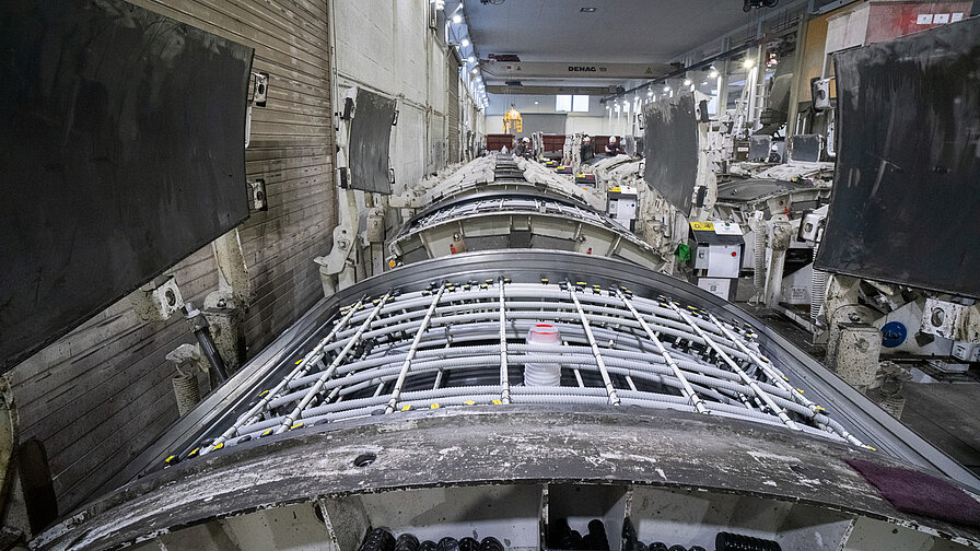 Der Startschacht für die Bohrungen wurde am Gaudenzdorfer Gürtel erstellt. Von dort aus arbeitet sich seit März 2025 eine Tunnelvortriebsmaschine sukzessive durch den Untergrund. Im Nachgang können die vorproduzierten Tübbingringe aus Stahlbeton Stück für Stück versetzt werden.