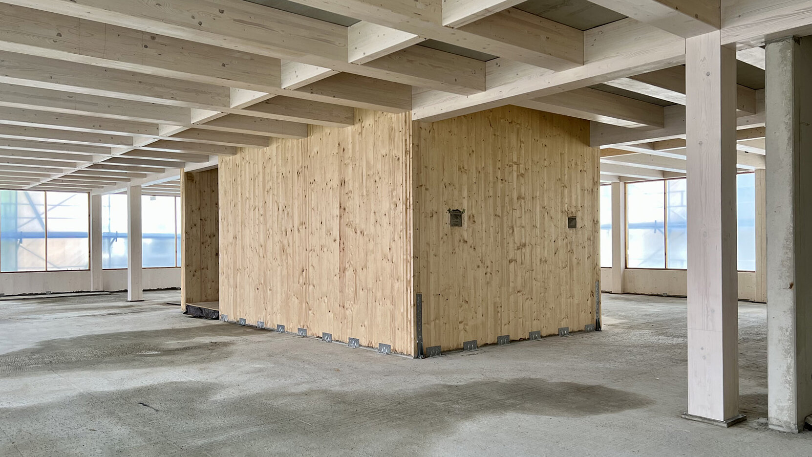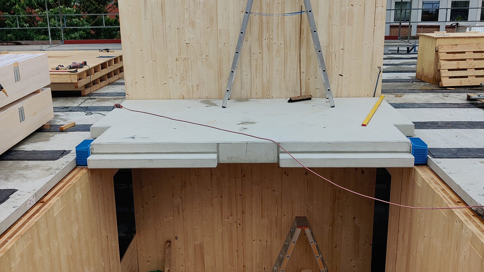 Der Einsatz des Trittschalldämmelements Schöck Tronsole im Holzhybridbau ist ein Novum.
