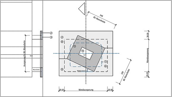 - Beim Einsatz der Schöck Tronsole® Typ P innerhalb eines Sichtbetontreppenhauses kann die Anforderung bestehen, die Wandaussparung für das Auge ansprechend zu verkleiden.