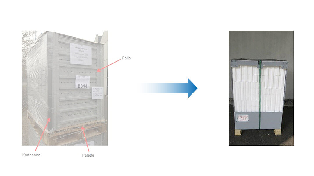 - Hölzer und Paletten werden außerdem direkt an den Standort in Polen geliefert, Schmelzkleber an den Standort in Essen.