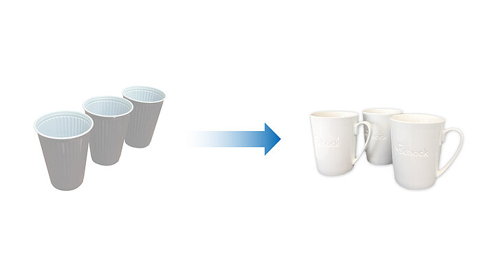 - Aus Umweltaspekten entschied man sich für eine Umstellung auf Keramiktassen, die immer wieder verwendet werden können.