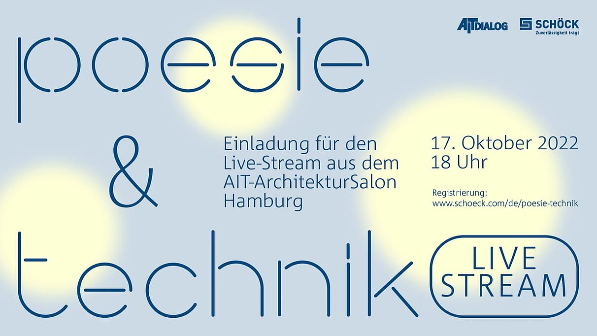 Im Rahmen der Veranstaltungsreihe Poesie & Technik strahlt Schöck bereits zum dritten Mal gemeinsam mit Kooperationspartner AIT-Dialog einen Livestream aus. Im Rahmen der Ausstellung „EINFACH GRÜN“ findet die Übertragung am 17. Oktober um 18 Uhr direkt aus dem AIT-Architektursalon Hamburg mit dem Fokus Nachhaltigkeit und grünes Bauen statt.