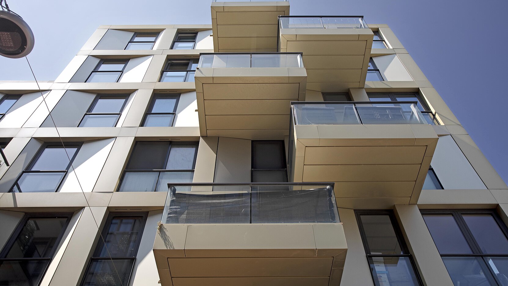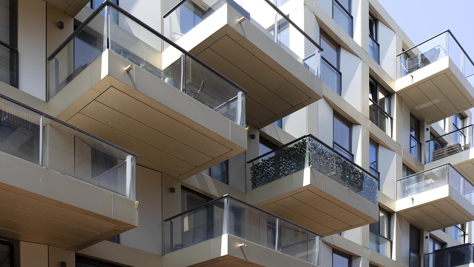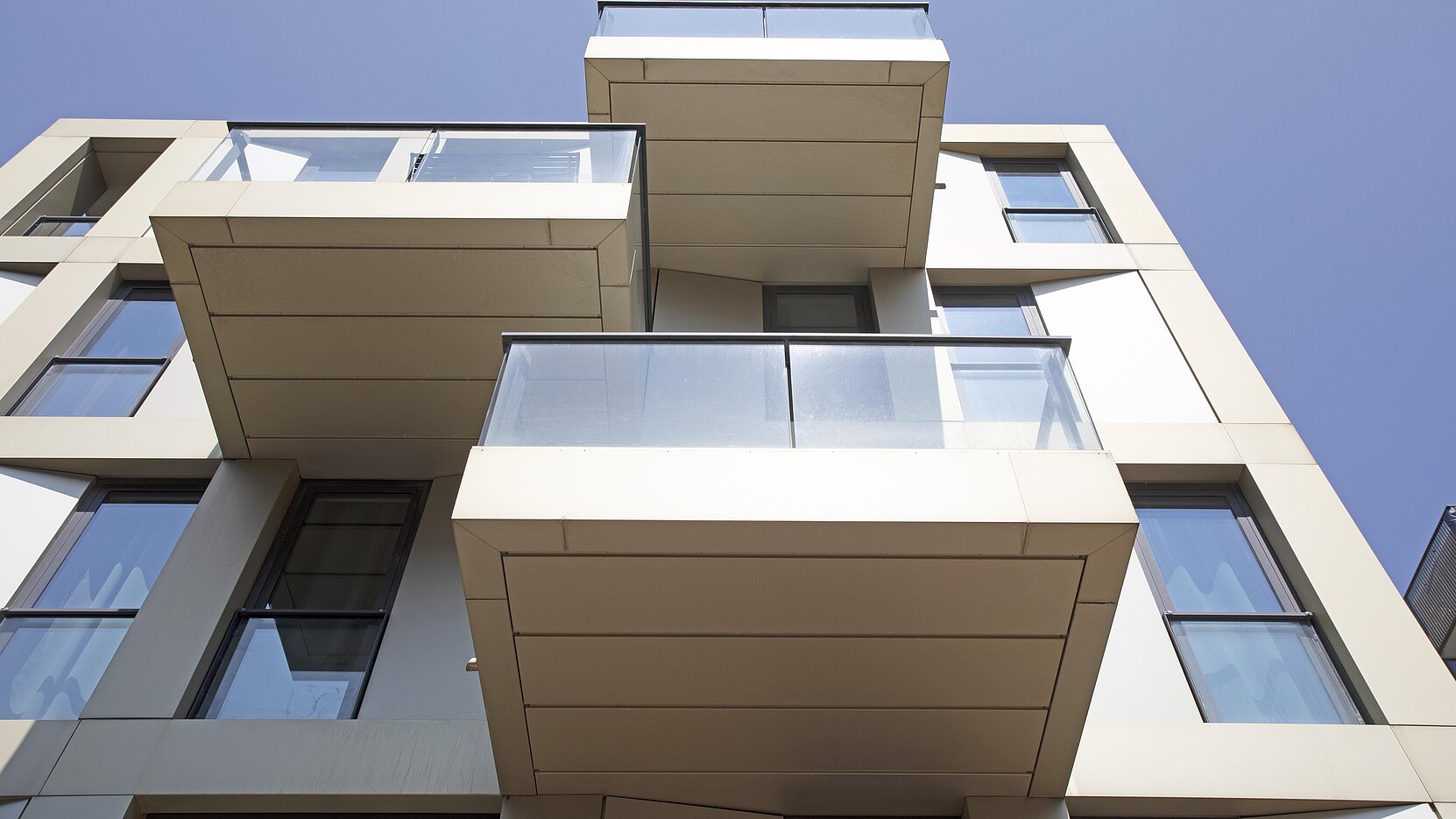 Het gebouw staat als een sprankelende markering op een solide stenen kelder, passend bij de robuuste sfeer van de voormalige haven. Voor de uitkragende balkons is gekozen voor Schöck Isokorf® T type SK, waarmee we thermische onderbreking combineren met betrouwbare draagkracht. Resultaat: comfortabele, veilige buitenruimtes met minimale warmteverliezen.